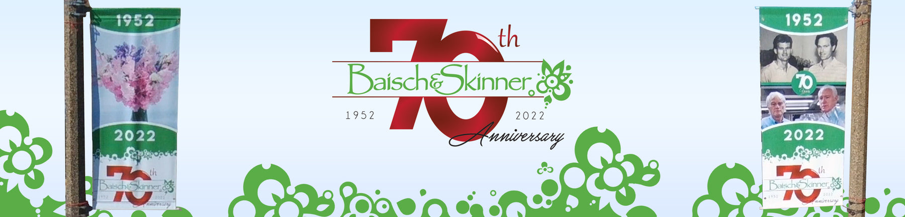 When Baisch and Skinner opened, the company rented 3,700 square feet of space, half of what was then the Clayton Rose Company. Baisch worked hard to tum his fledgling company, that mainly consigned flowers, into the place of stature that it holds today in the St. Louis Wholesale Flower Market. In 1962, they opened the Baisch and Skinner Annex on LaSalle Street in what was once a dairy barn to handle supplies. In 2007, Baisch and Skinner acquired Stuppy Wholesale, adding locations in Kansas City, Springfield, Topeka and Wichita. Additional locations in Quincy, Illinois, and Cape Girardeau, Missouri, rounded out the seven locations of Baisch and Skinner today.