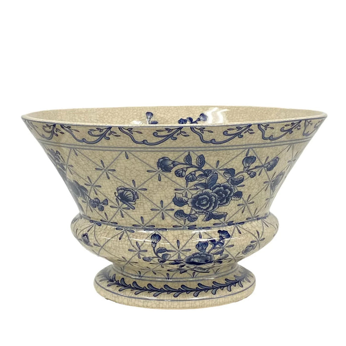 9.5"W x 5.5"H Round Rose Trellis Bowl - Blue/White