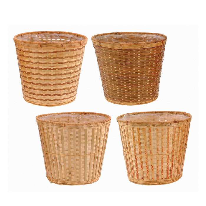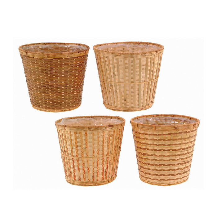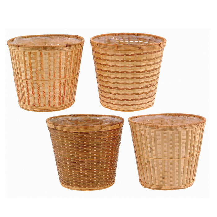 White Painted Bamboo Basket - Fits 10 inch Pot - Liner Sewn-in